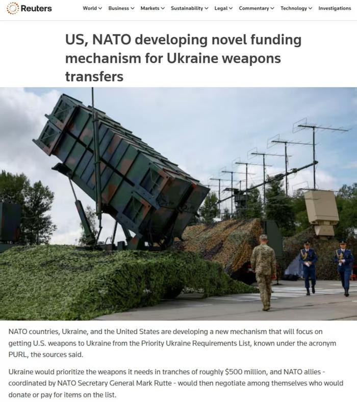 报道说,新机制将根据“乌克兰优先需求清单”,向乌方提供美制武器。乌克兰可按每批约5亿美元的标准确定所需武器优先级,随后由北约秘书长马克·吕特协调成员国磋商,决定由哪些国家捐赠或出资购买清单所列武器。